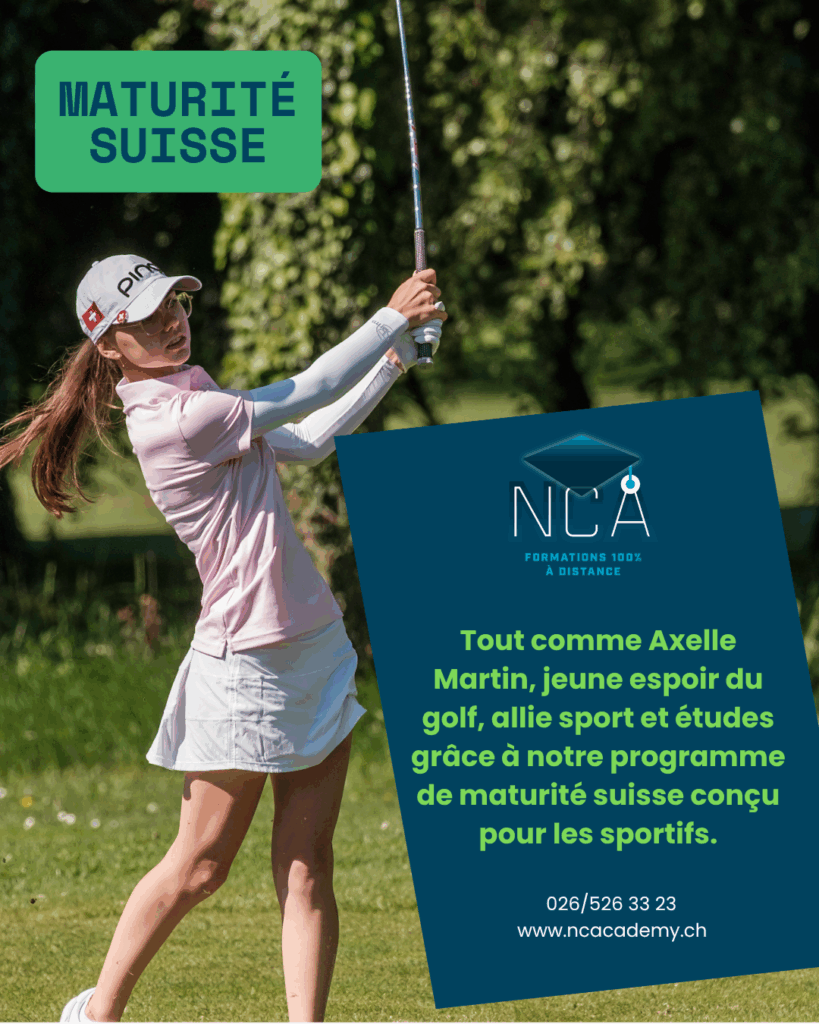 Axelle Martin, jeune espoir du golf suisse, a choisi NCAcademy pour poursuivre ses études à distance et obtenir sa maturité suisse, tout en se consacrant pleinement à sa passion sportive.